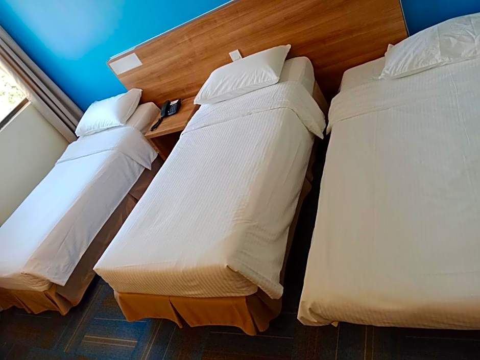 Includes two single beds and 1 roll-away bed.
